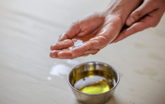 Abhyanga – Ayurvedisk oljemassage. Huden är kroppens största organ och inom Ayurveda anses en daglig vård ha en stor betydelse för vår hälsa och vårt välbefinnande. Oljemassagen sägs rena huden och kroppen. Den sägs balansera det endokrina systemet. Den smörjer, mjukar upp muskler, vävnader och leder. Sesamolja är den bästa oljan pga sin förmåga att tränga in i huden och rekommenderas generellt till alla kroppskonstitutioner. Om du inte tål den kan du välja en annan olja. Det bästa är att använda mognad sesamolja.